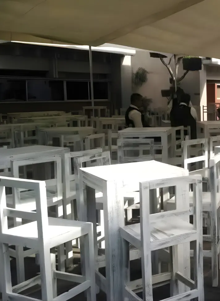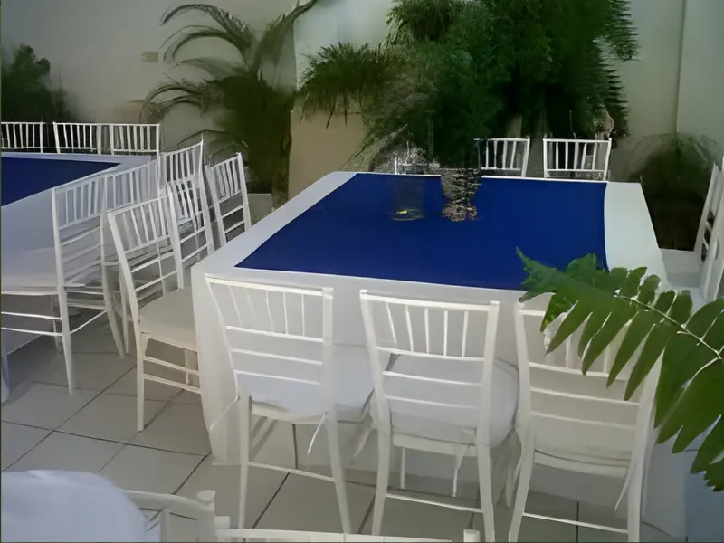 - Mesas redondas, cuadradas, rectangulares o de cóctel, junto con sillas cómodas y limpias para todo tipo de evento.