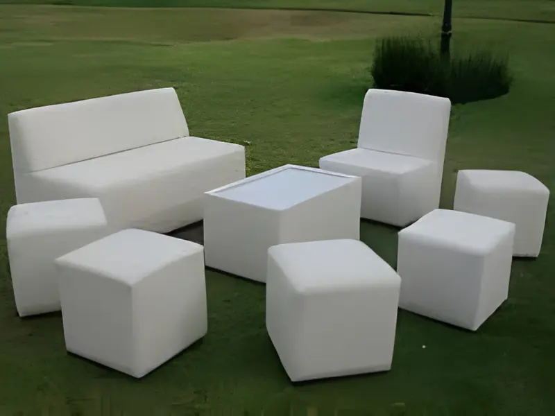 - Salas lounge, periqueras y accesorios modernos que aportan estilo a tus celebraciones.